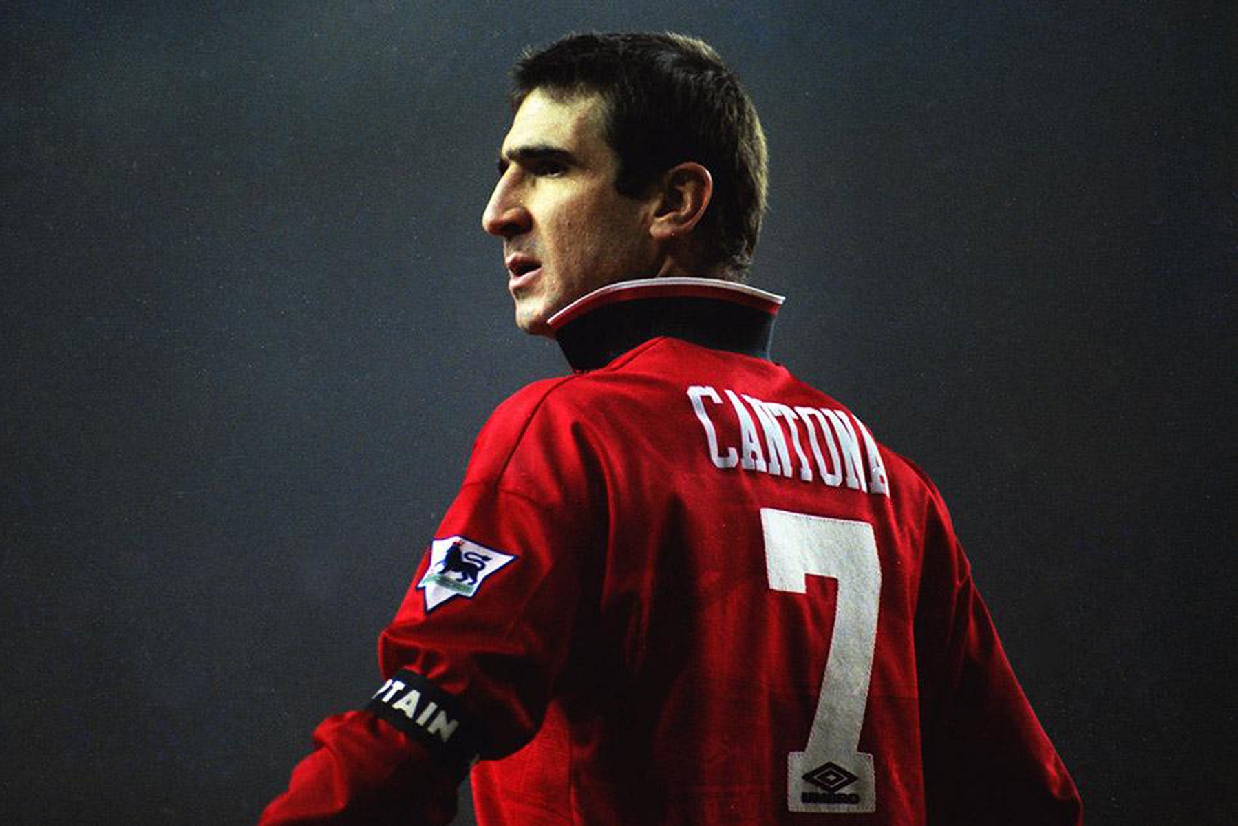 The buzzcut, the unibrow, the face of a weather beaten medieval warrior, the absolutely beautiful red Manchester United 1990s home shirt by Umbro with the Sharp sponsorship on the chest, the iconic 7 in white on the back, long sleeves, and the world’s most simultaneously elegant and intimidating popped collar –– Eric Cantona was already an icon before he even touched the ball or opened his mouth. See More