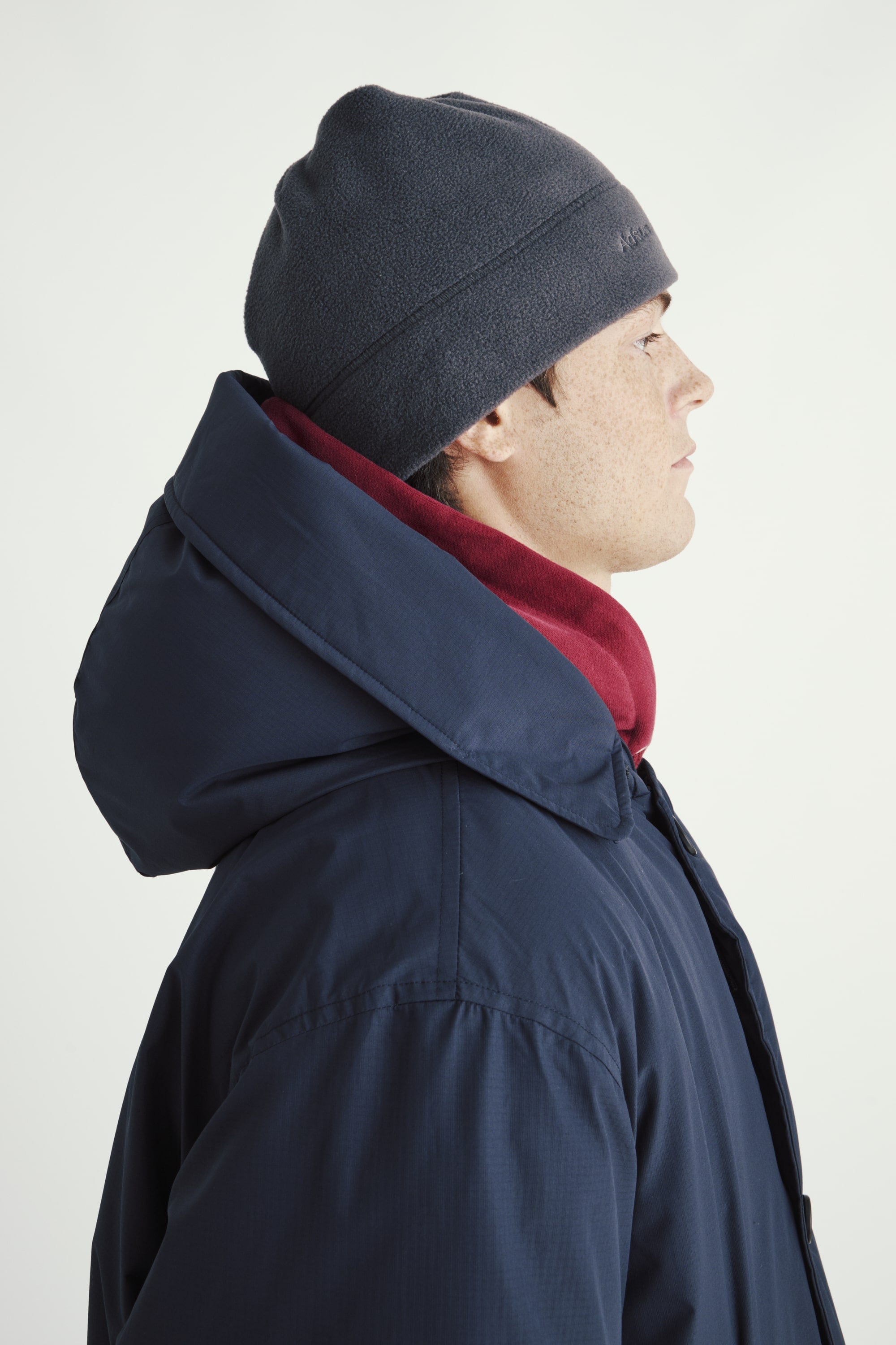 A folded hem adds a double layer of insulation around the ears, where you feel the cold the most. The contrast coverstitched edge gives the beanie a clean, functional finish while securing the extra layer in place. Simple, warm, and dependable, it’s the kind of cold-weather piece you’ll keep in your jacket pocket all season long.