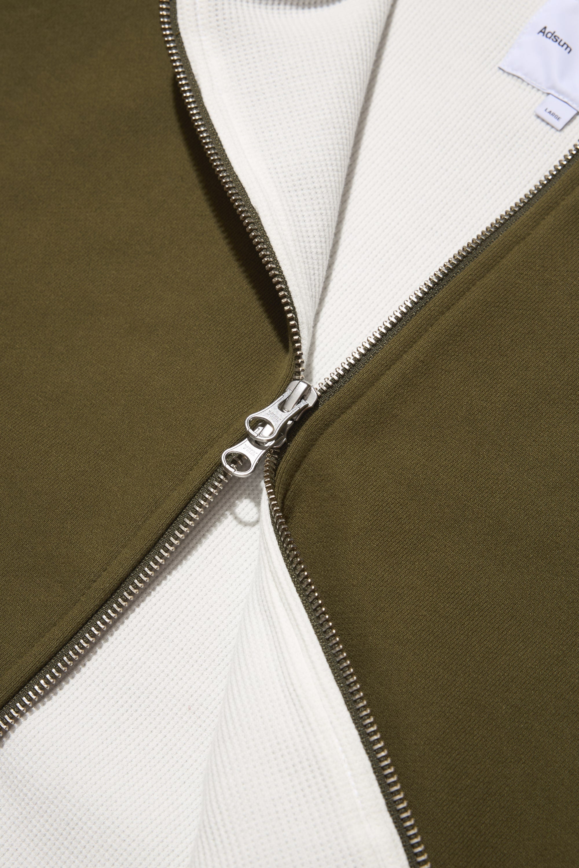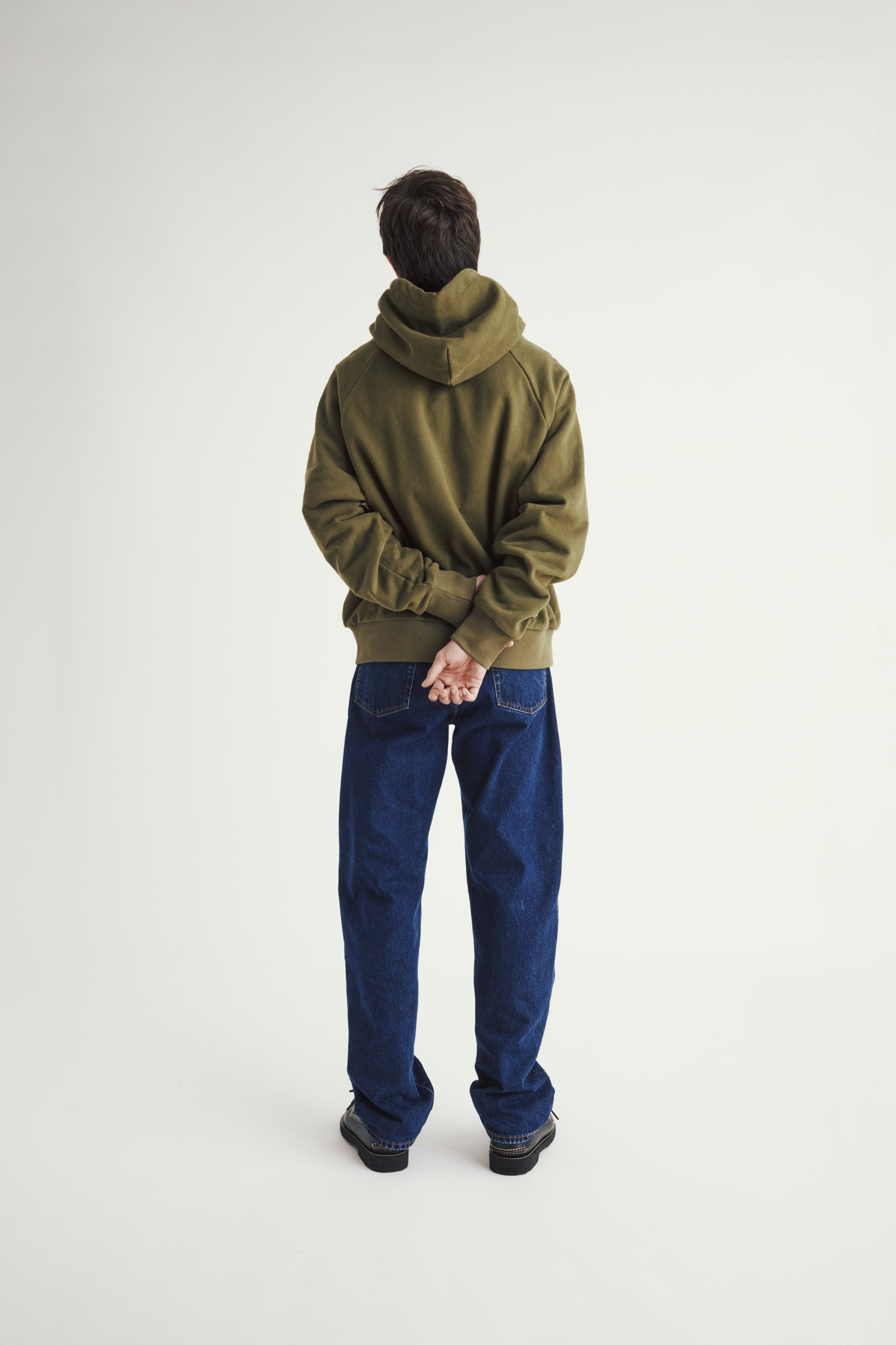 We finish the piece with a classic high-shine YKK metal double zip — a detail chosen for longevity and a clean, elevated look. The exterior fleece is peached on the face side, creating a uniquely soft handfeel that contrasts with its super-heavyweight build. The result is a hoodie that’s warm, durable, and comfortable from the first wear, and one that only gets better with time.