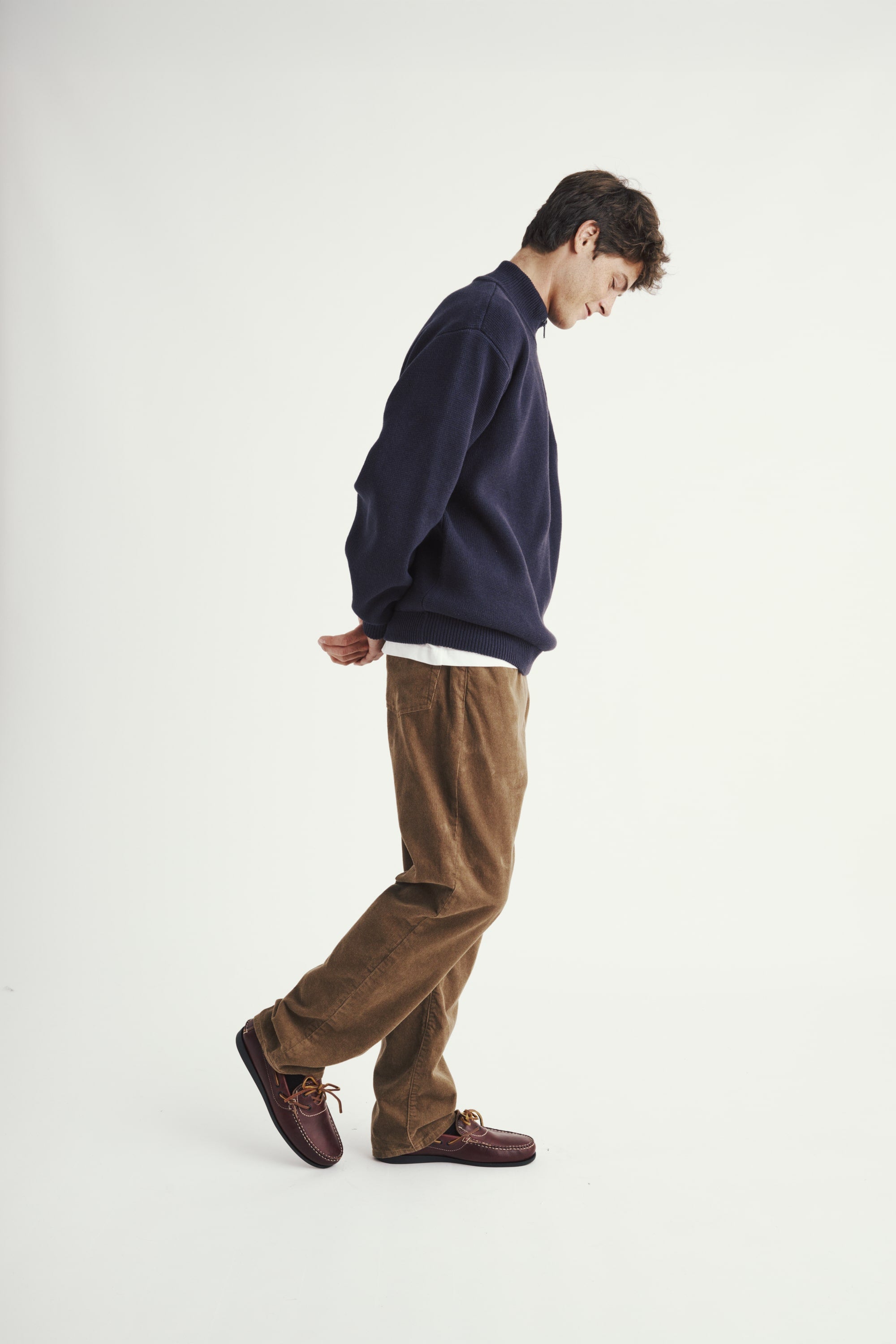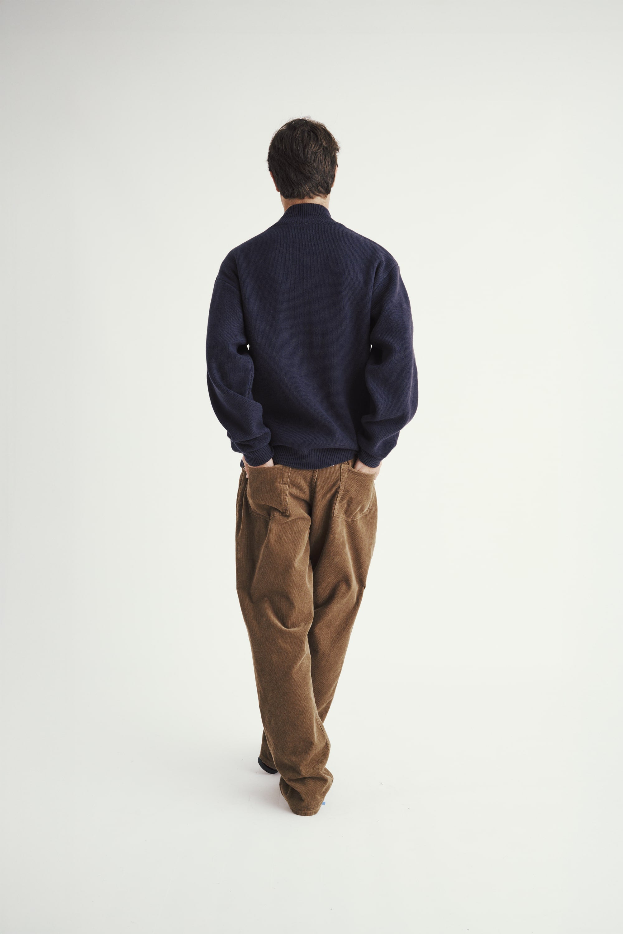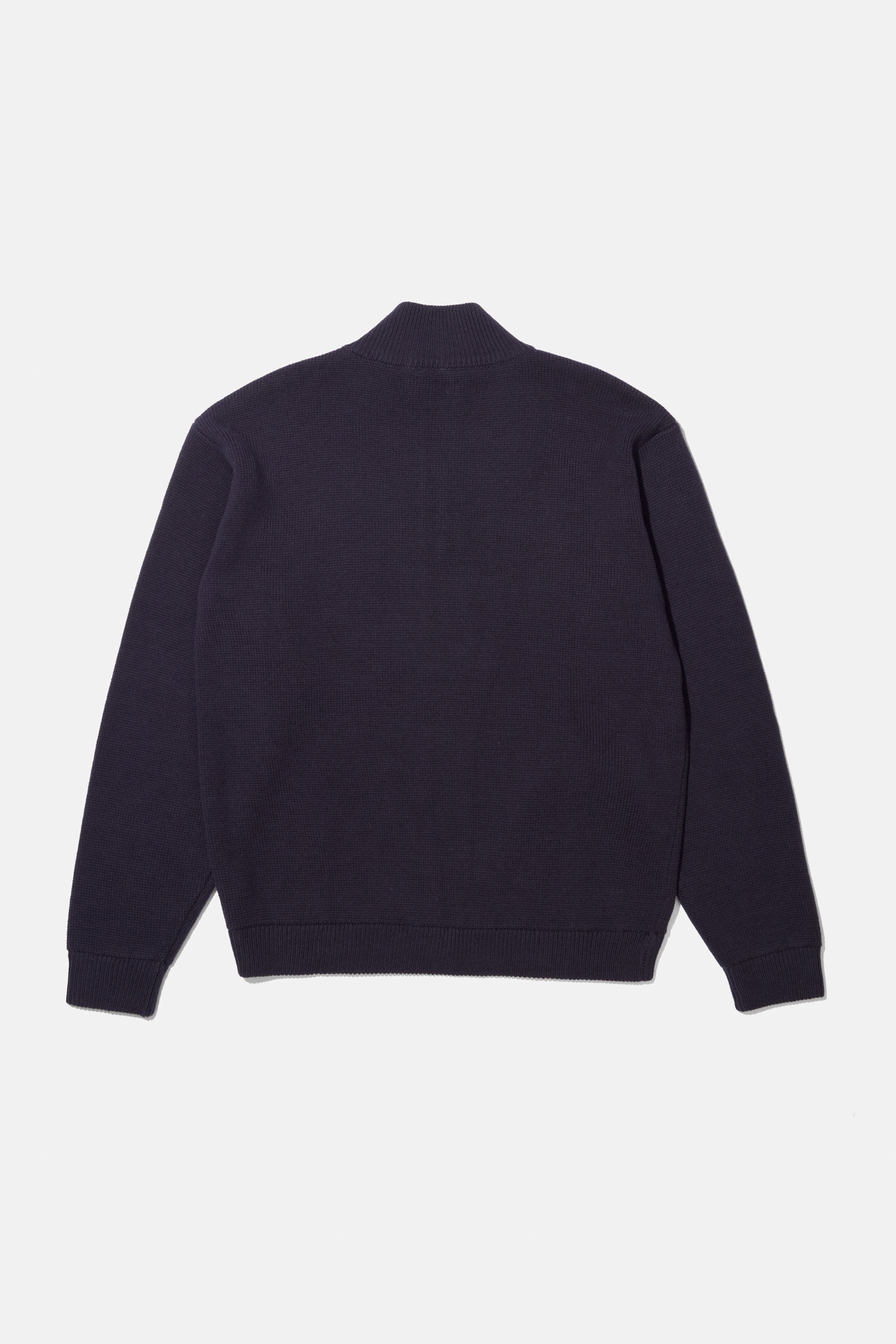 The 3/4 Knit Zip Pocket Sweater is built from a 2-end, 2/16NM cotton–acrylic yarn at 7-gauge, striking a balance between structure and flexibility. The blend of 60% cotton and 40% acrylic gives the knit a soft, breathable hand with a bit more polish and longevity than pure cotton. The double-end construction adds density and a bit of weight, so the sweater holds its form and sits cleanly on the body. It’s a mid-weight knit that works equally well on its own or layered under outerwear.