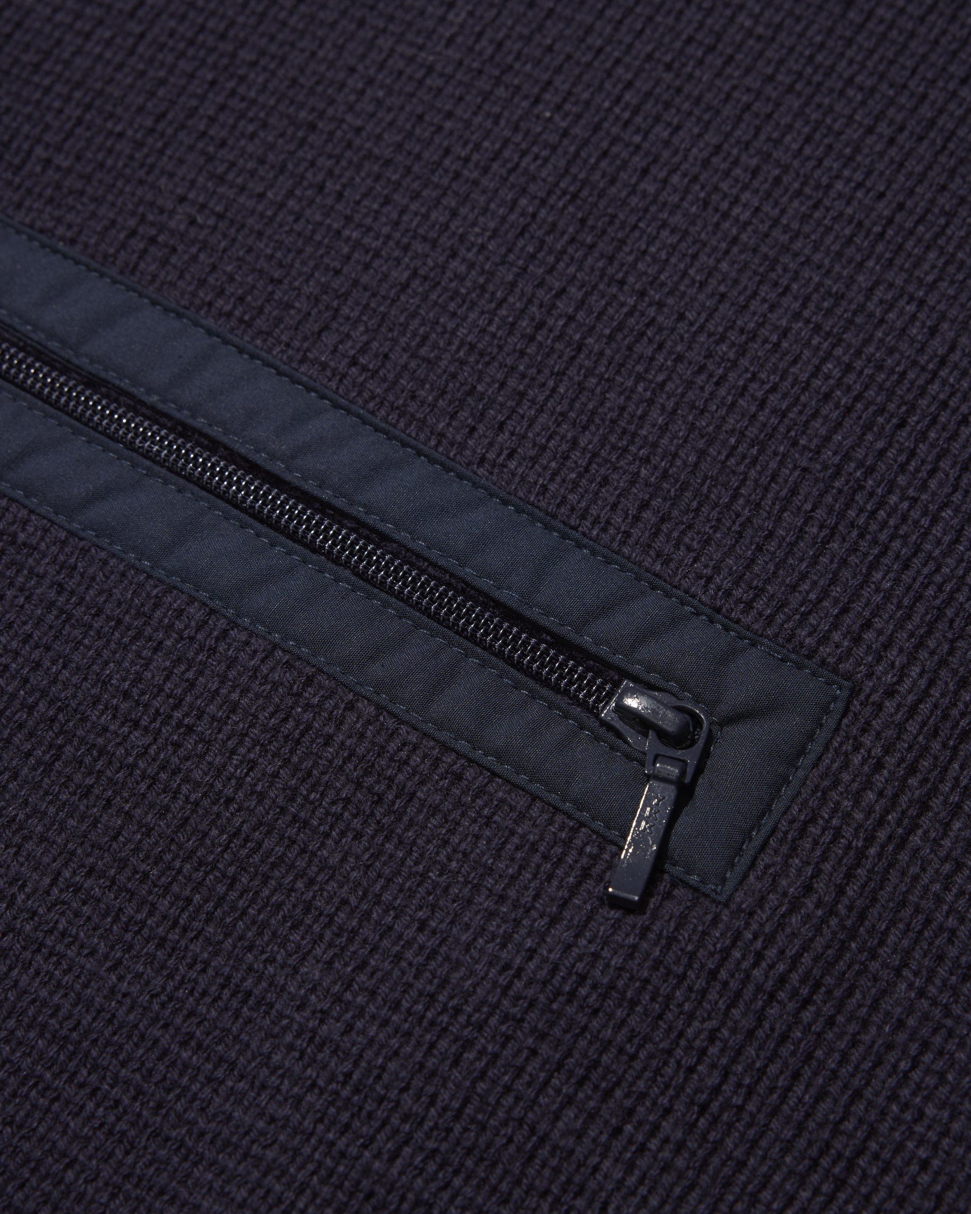 There’s a lot packed into this new FW25 development. The name is a little hard to say.. We’ve always loved zip-front styles, but this one pushes things further by blending knit structure with woven reinforcements. The center front placket, pocket placket, and internal pocket bag are all cut from lightweight, abrasion-resistant nylon, a nod to the hybrid knit-woven construction done by some of our favorite technical outerwear brands.